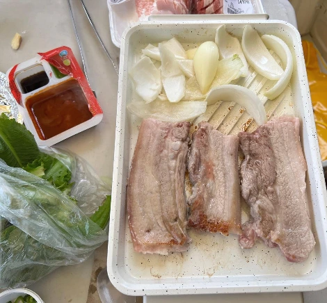 캠핑장에 도착한 지 거의 3시간 만에 시작된 우리의 식사 시간!!