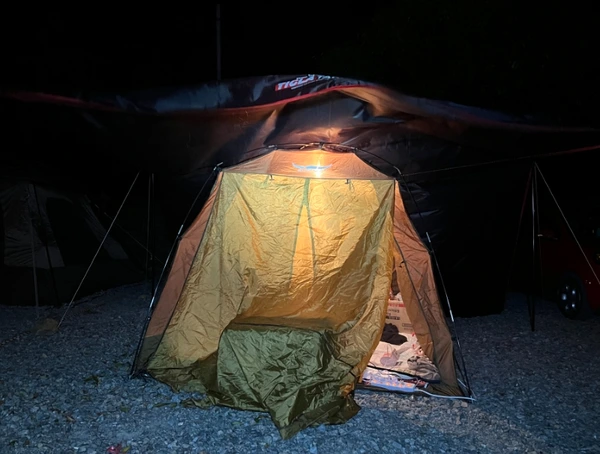 이제 추워도 괜찮을 이너 텐트가 있고 또 비바람이 불어도 아늑하게 먹을 수 있는 실내 전실을 생겼다.