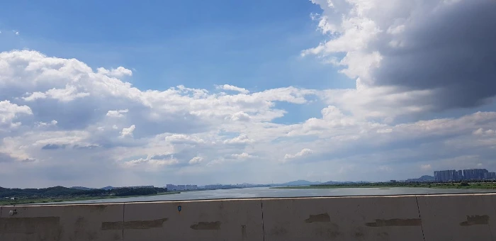 '맞아. 요즘 덥긴 하지만 하늘 정말 예쁘지.'