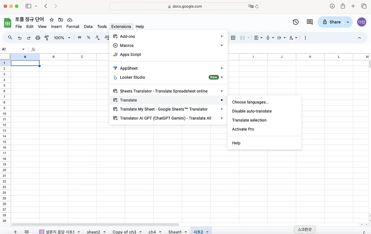 난 이것저것 해보느라 뭐가 많은데 다 필요없고 검색창에 translate라고 쳐서