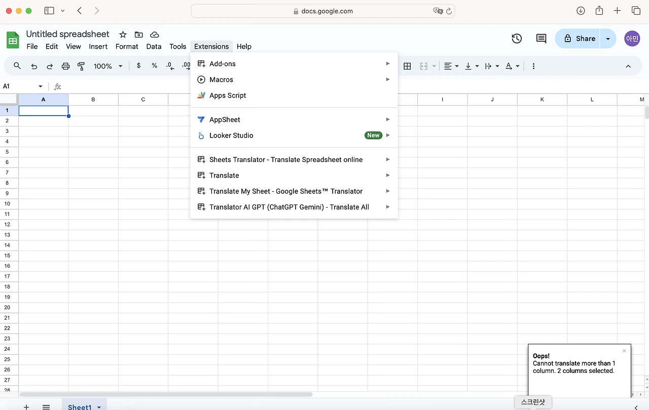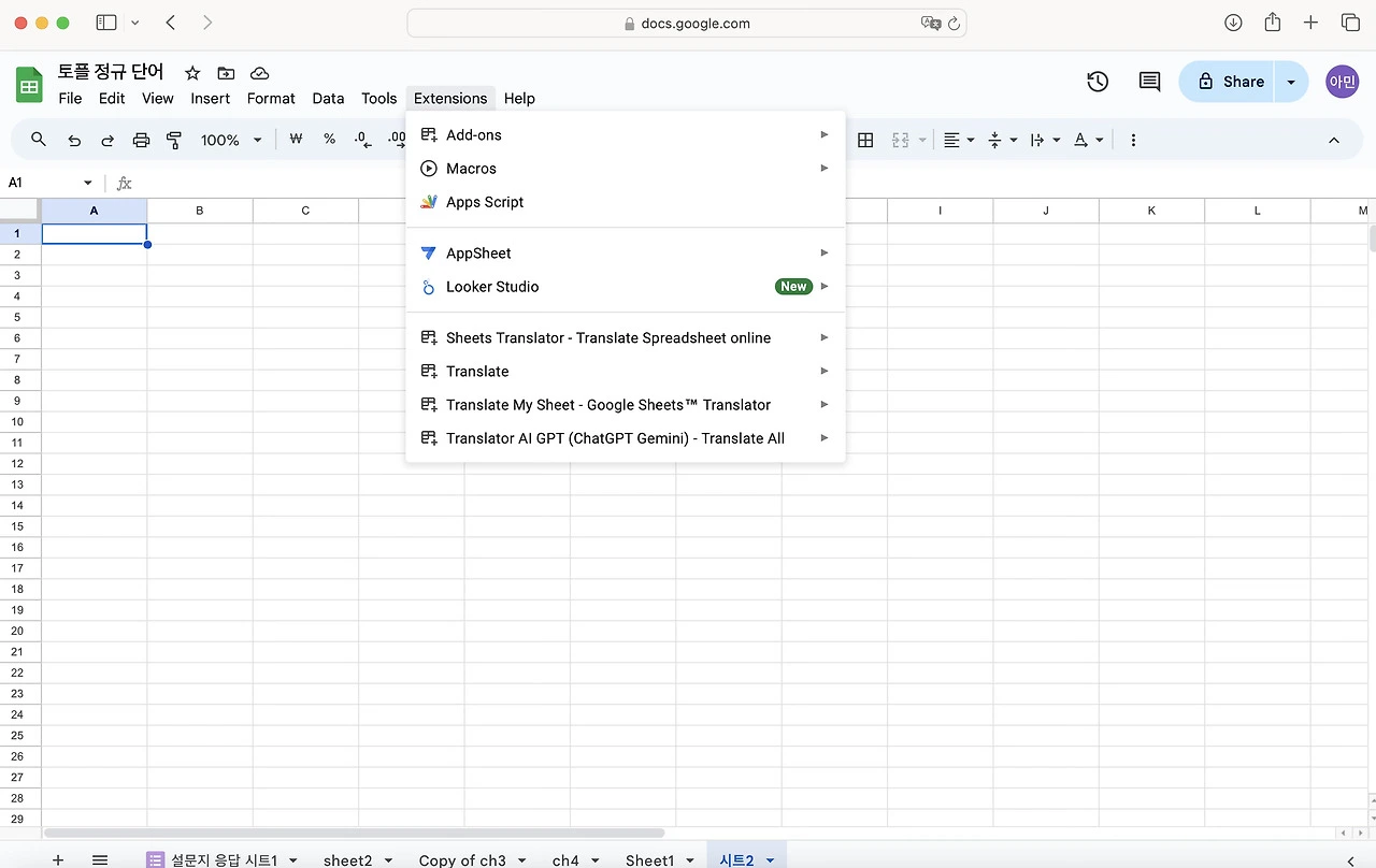 우선 구글 시트를 열고