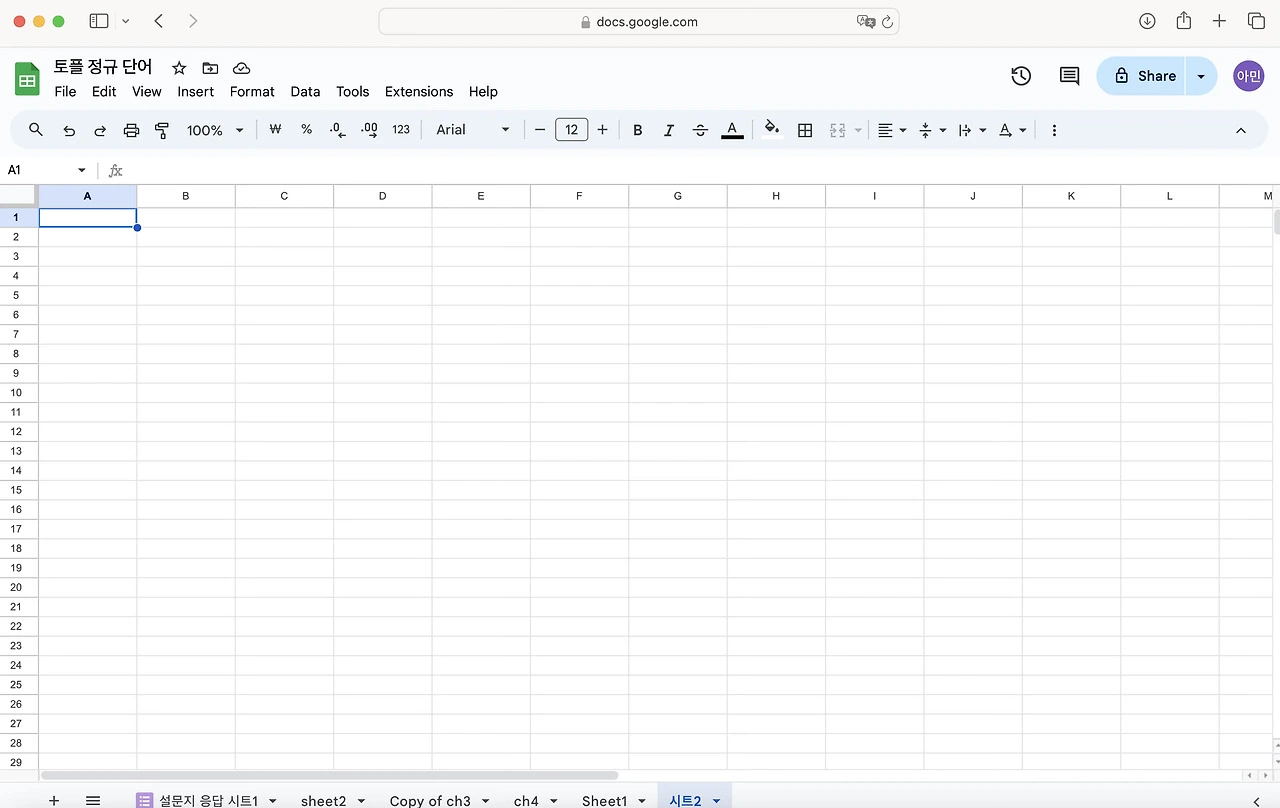 첫 번째, 구글 스프레드 google sheet를 사용한다.