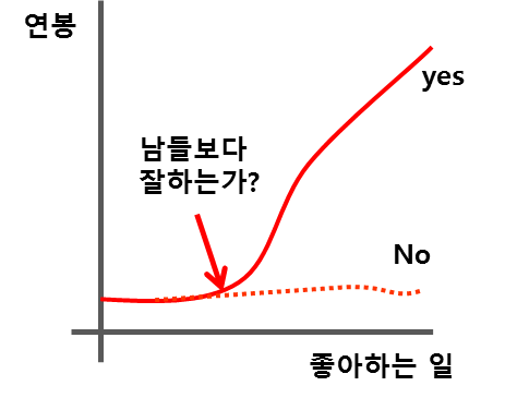 좋아하는 일 < 돈 버는 일 < 잘하는 일 순으로 연봉이 높았다.(기회가 된다면 주변 친구들을 인터뷰해서 비교해볼 것을 추천한다.) 좋아하는 일은 대부분 돈이 되지 않았다.