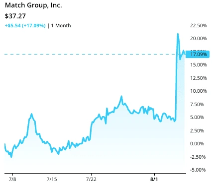 수요일 Match Group 주가가 10% 이상 뛰었습니다. 스펜서 래스코프 CEO가 실적 발표에서 애널리스트들을 설득하며 "온라인 데이팅 대기업에서 일이 뜨거워지고 있다"고 확신시켰거든요.