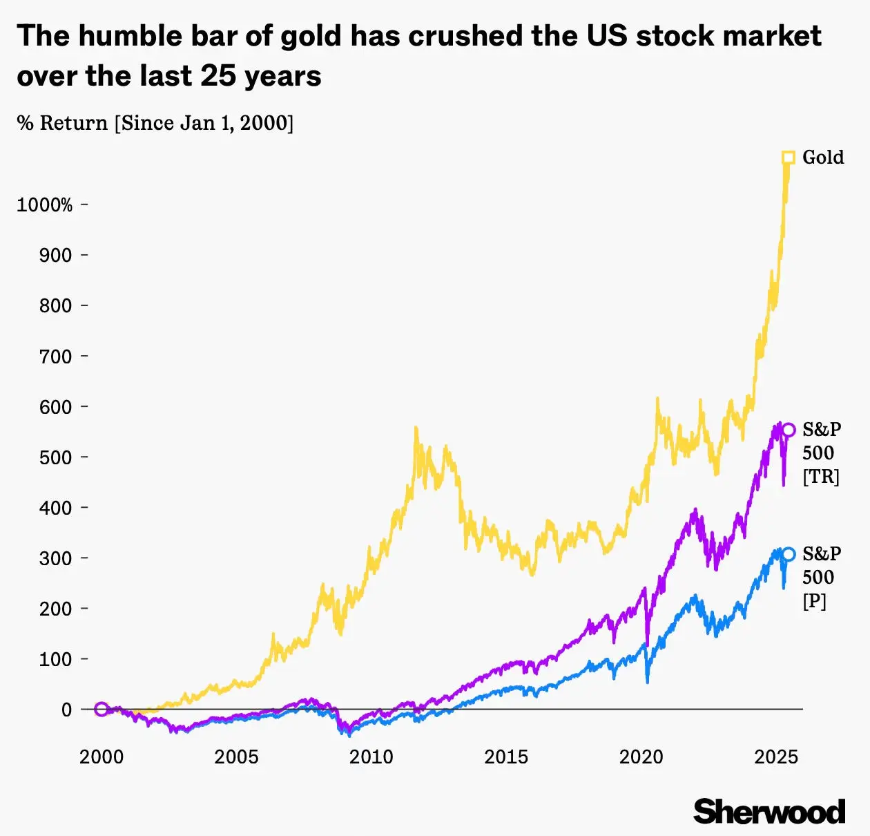 "혁신과 성장"을 외치던 25년 동안, 5천 년 된 노란 돌멩이가 최고의 투자처였다.