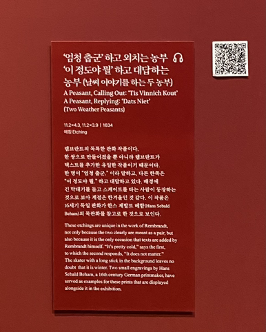 렘브란트 전시관 앞에서 전시 방향을 읽었다.