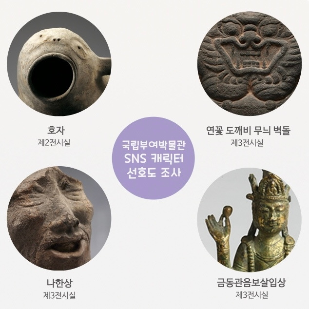 국립부여박물관의 소장품 호자/연꽃도깨비무늬벽돌/금동관음보살입상/나한상이 후보로 나섰다.