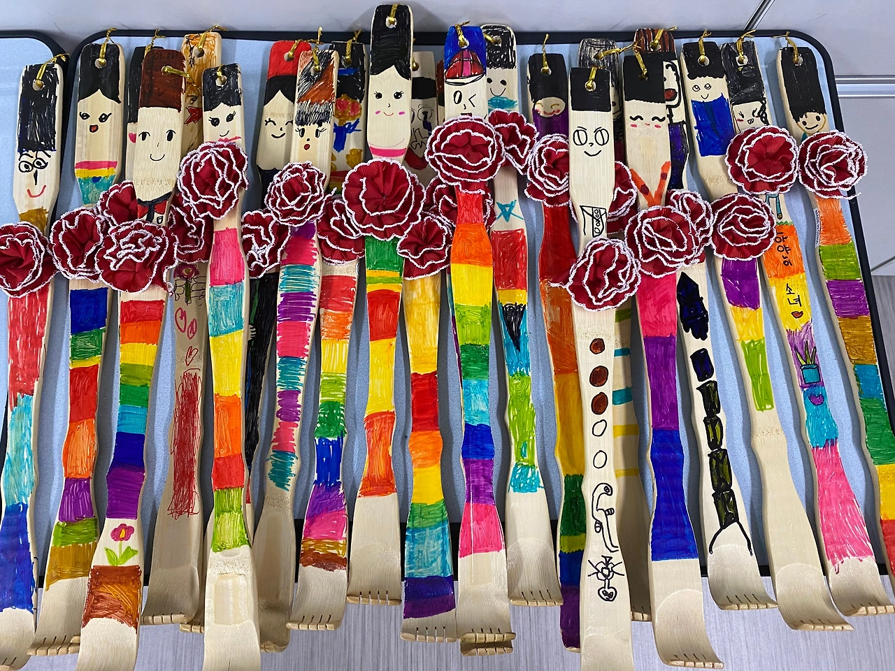 “선생님이 어버이날에 효도하는 마음을 담아서 부모님께 효자손을 선물하자고 했잖아요?”