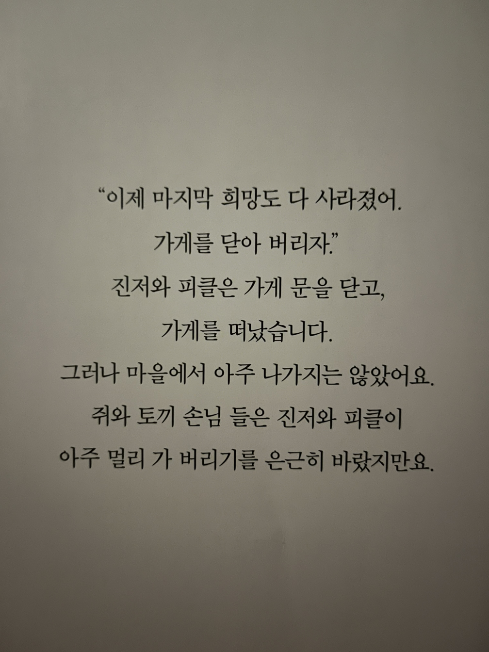 동화 중에서 가장 동화 같지 않은, 나에게는 거의 다큐 리얼리티가 따로 없었다. 외상=신용카드로 본다면 개인의 측면에서 경제관리를 못하면 결국 파산에 이르는 결말이거나, 자영업자의 상권 분석 오류로 현금 흐름이 막혀버린 딱한 동네가게를 보는 것 같기도 하다.