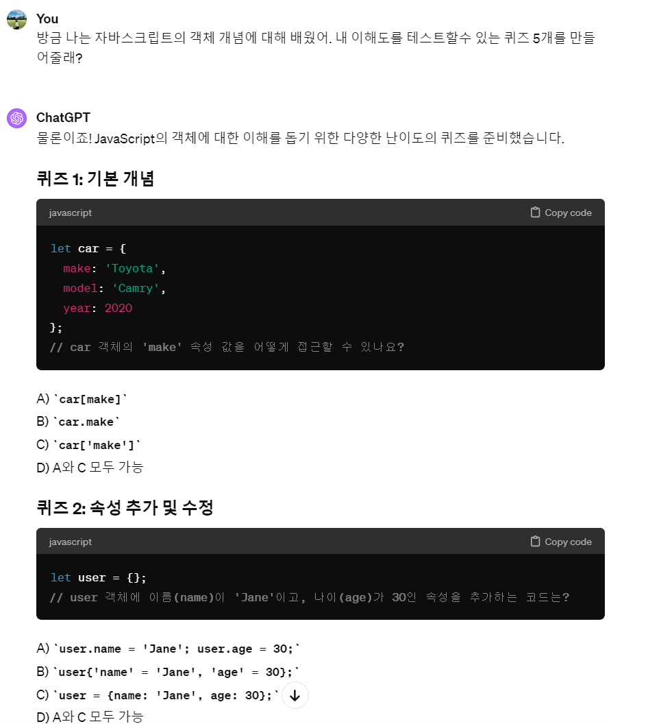 방금 나는 [공부 내용 설명]을 배웠어. 내 이해도를 테스트할수 있는 퀴 5개를 만들어줄래?