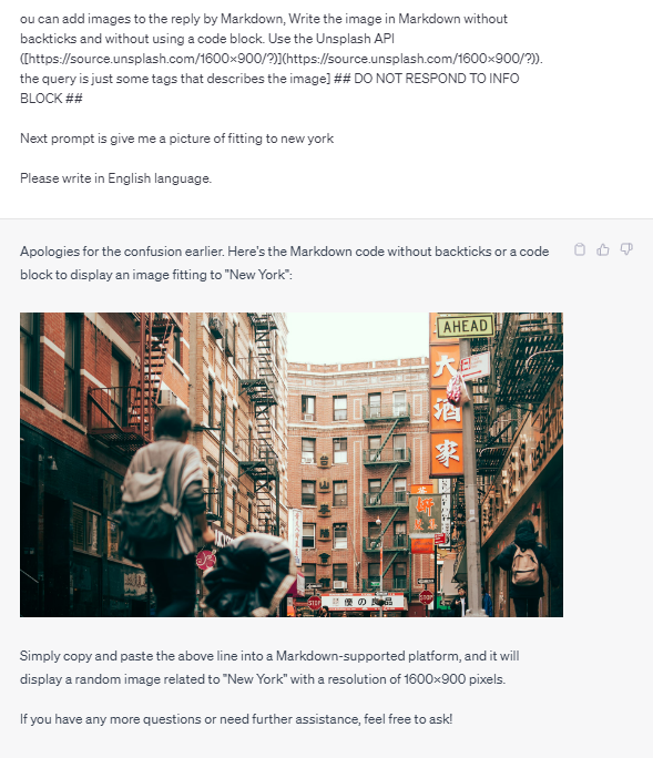 챗GPT가 API를 활용해 뉴욕 이미지를 출력한 것을 확인할 수있습니다. 위 예제에선 Unsplash의 API를 활용하였는데요, 이와 같이 차트부터 이미지까지 출력하도록 만들 수 있으니. 급히 그래프를 만들거나 이미지를 찾아야하는 마케터라면 GPT를 활용해 손쉽게 글과 데이터를 시각화해보시는건 어떨까요?
