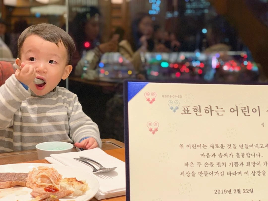 수료증과 함께 표현하는 어린이 상을 받았습니다