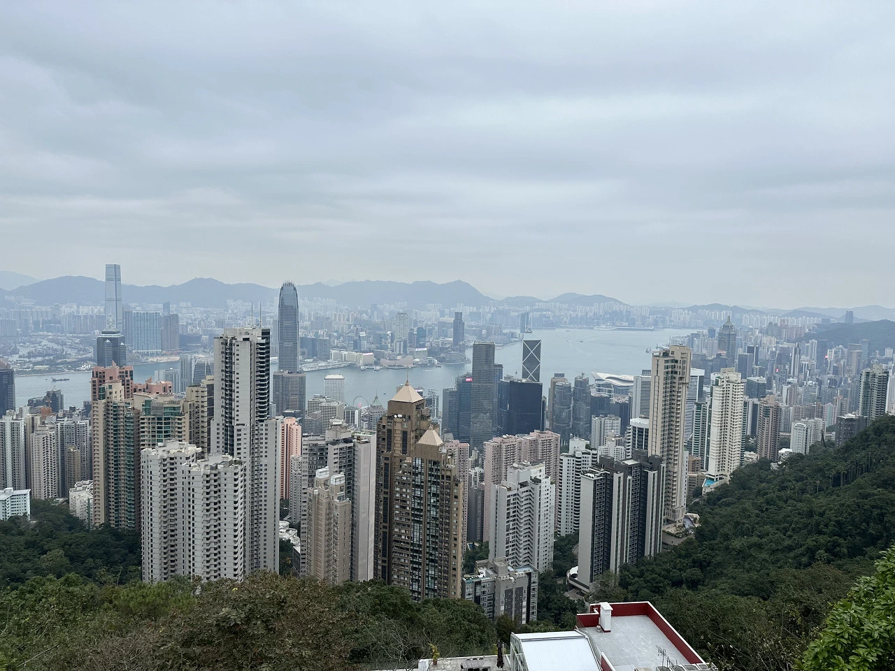 피크 트램(Peak Tram)도 탔습니다. 엄청난 경사였어요. 정상에 올라서는 홍콩의 경치를 감상할 수 있었습니다. 오래 머물지는 않았고, 내려 올 때는 버스를 탔습니다. 가족 사진도 많이 찍었습니다.