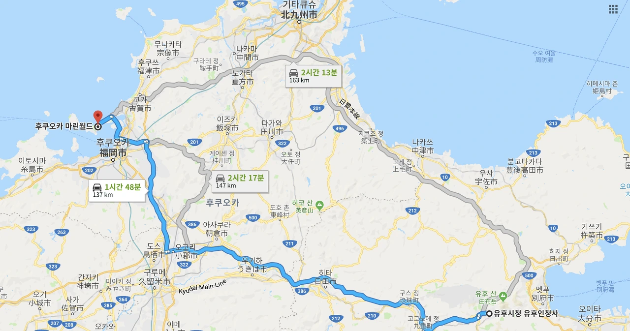유후인 료칸에서 체크아웃 하자마자 차를 달려 당도한 곳은 바로 후쿠오카 마린월드(マリンワ-ルド). 후쿠오카시 중심에서도 조금 떨어져 있는 동네. 마린월드에서 놀다가 점심까지 먹고, 오후에는 후쿠오카 도심 관광을 하자는 계획이었다. 물론, 구체적으로 어디를 가겠다는 계획은 없었다.