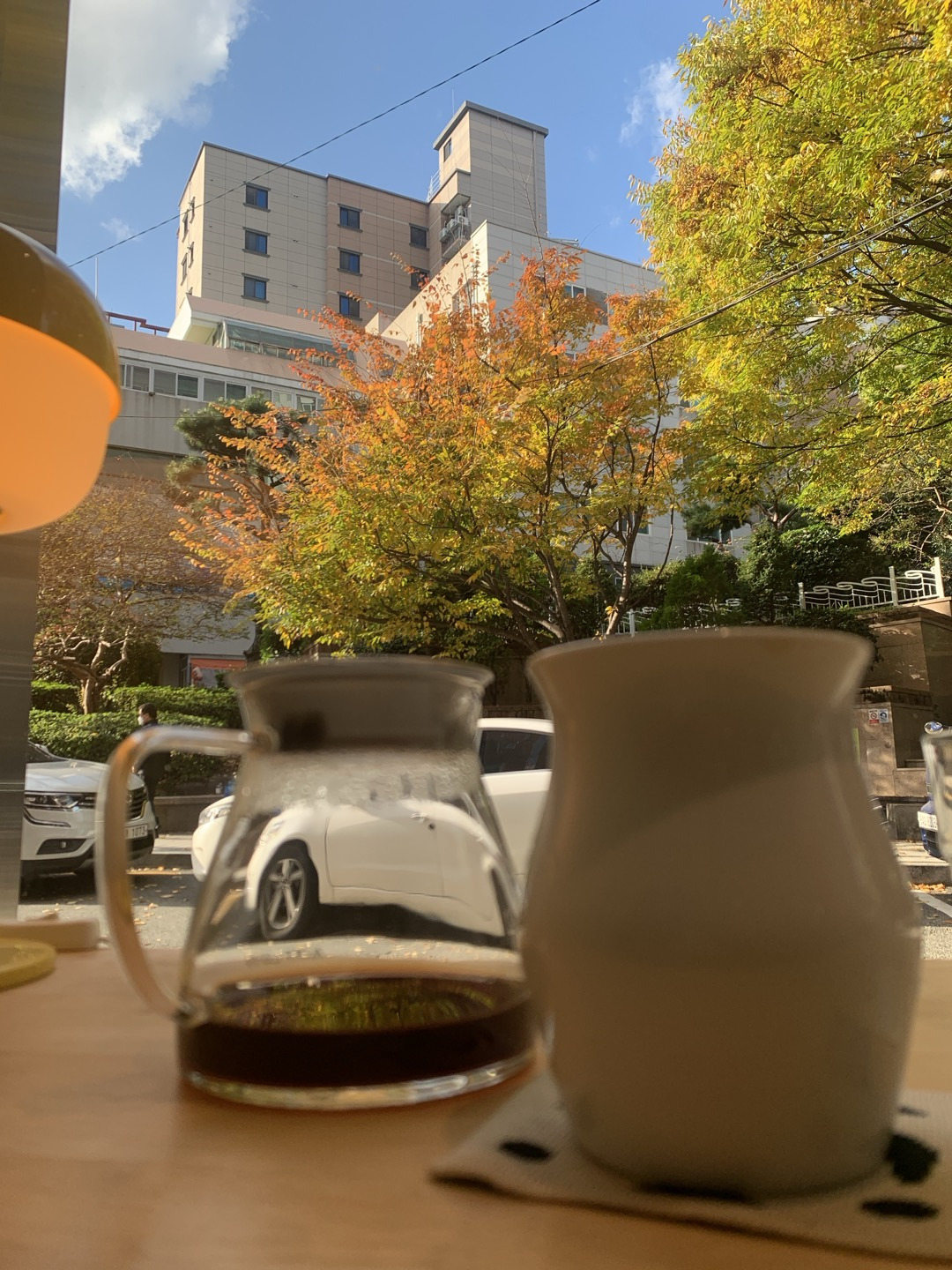 창밖으로 단풍잎들이