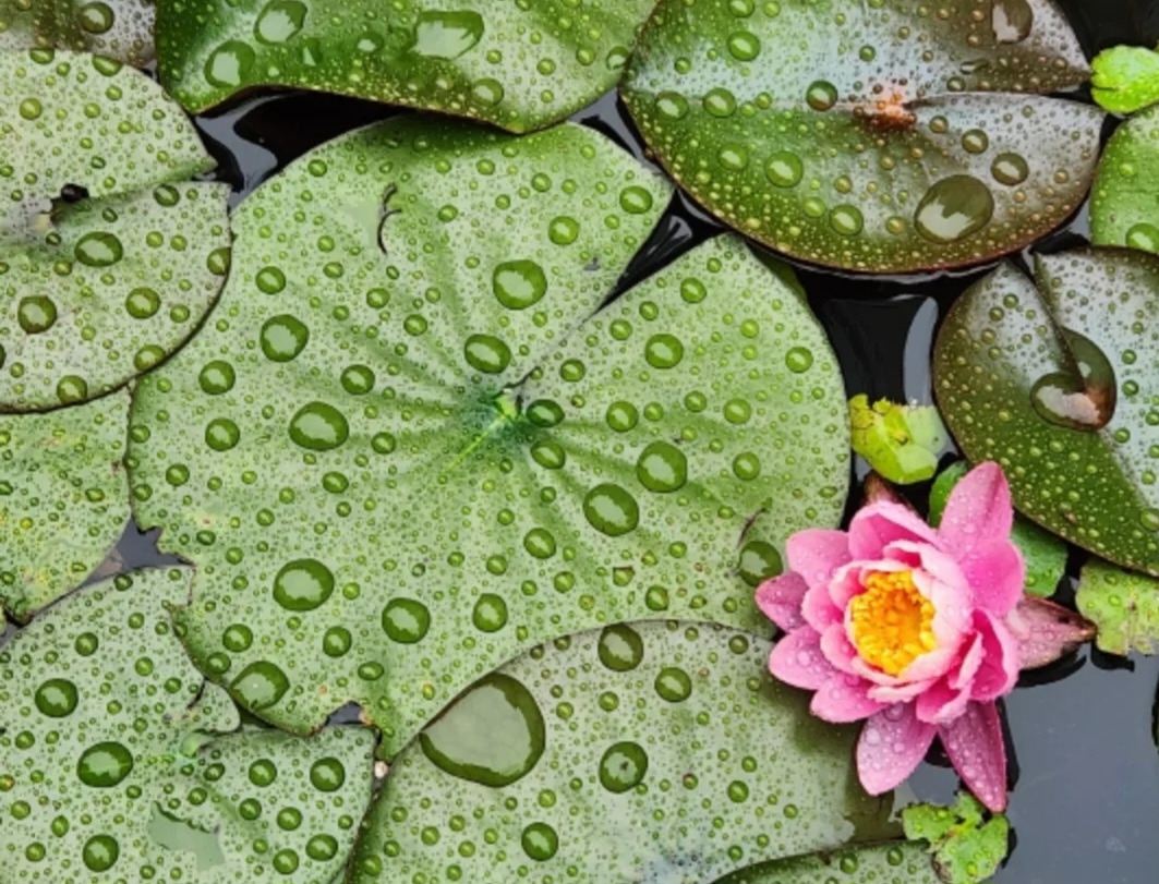 목련과 무궁화 같은 꽃잎 끝에도 작은 물방울이 머금어져 있다.