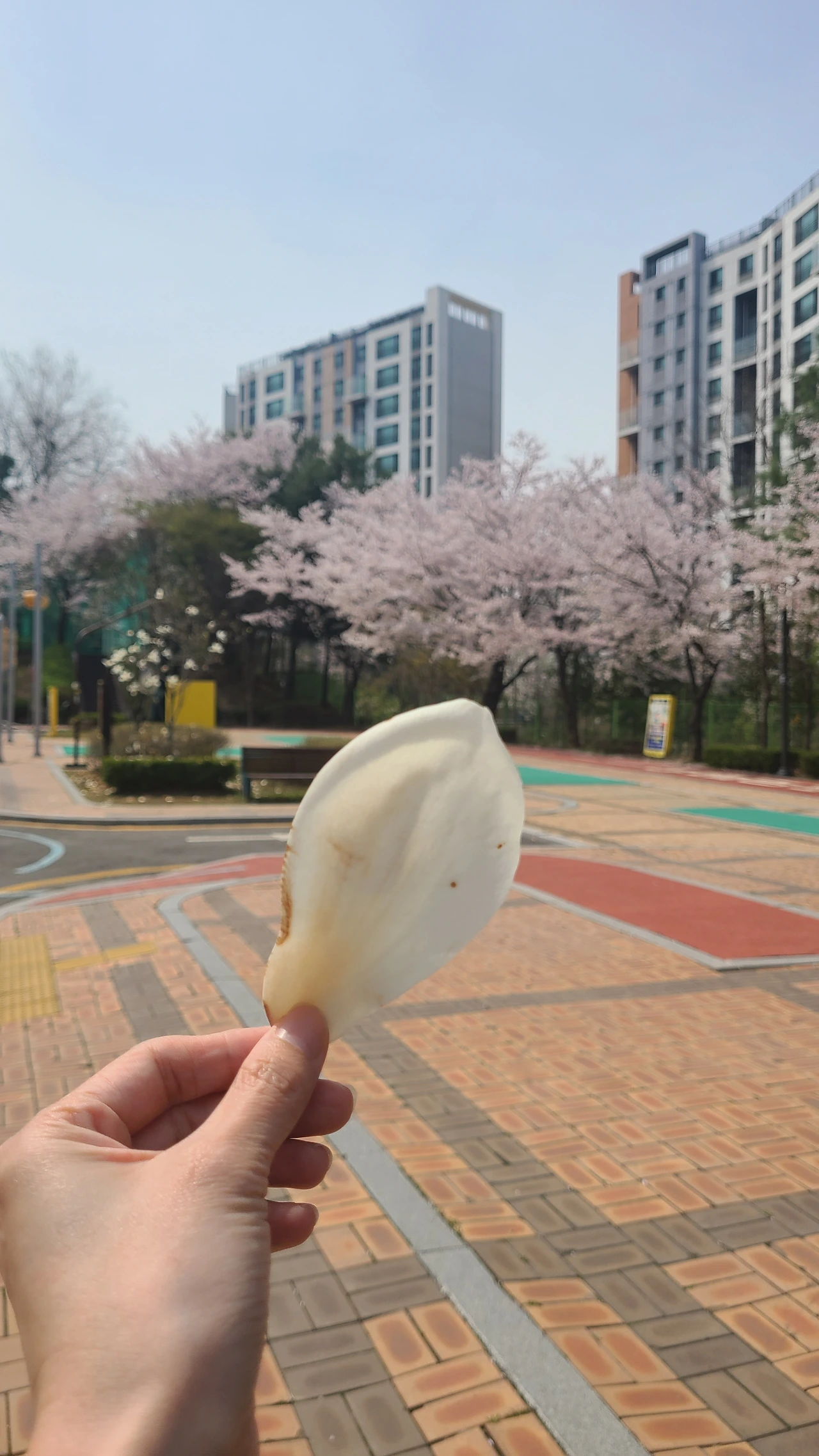 한 친구맘이 부스럭 부스럭 목련 꽃잎을 꺼내셨다. 깨끗한 것만 최대한 주워오셨단다.