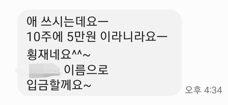 "네~ 10주 5만 원입니다! 더 이상 내는 돈 없으세요~"