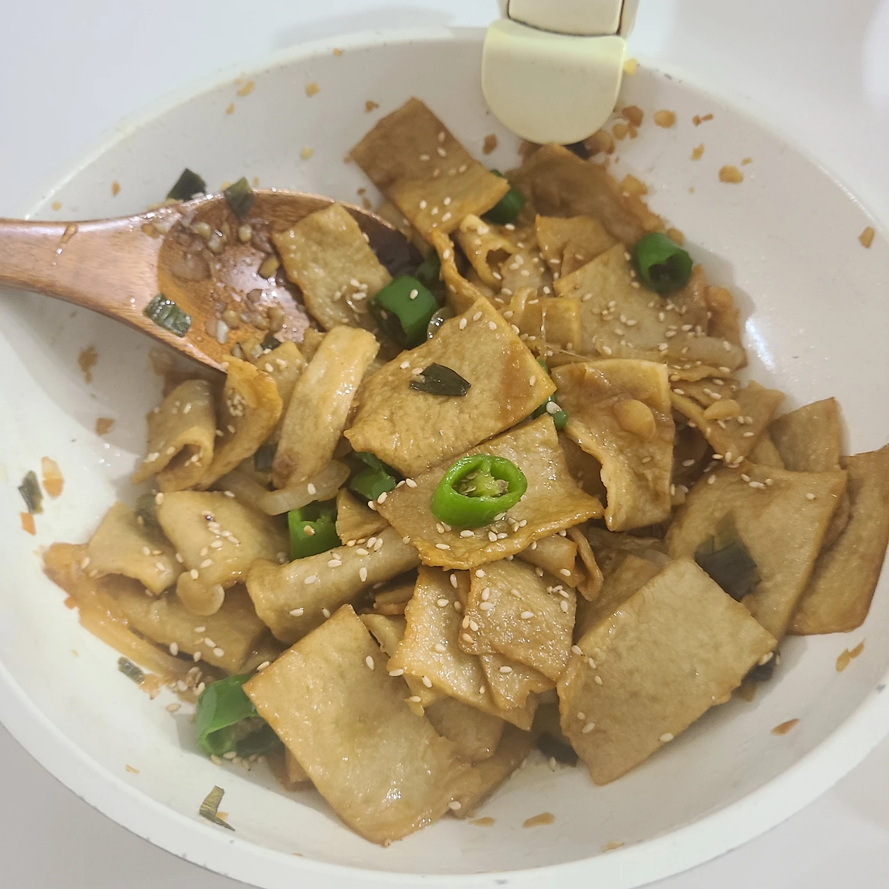 달궈진 팬에 양념된 진미채를 넣어 볶기 시작했다.