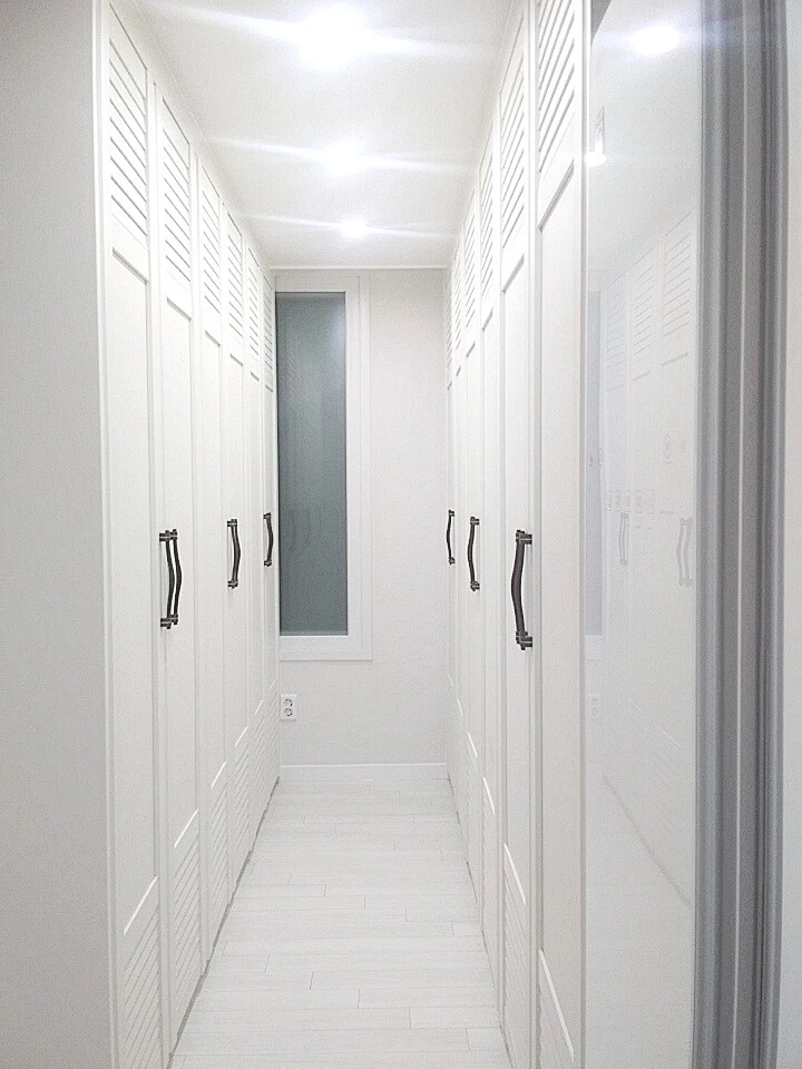 옷장에 한이 맺힌 나는 구축 아파트라 드레스룸이 따로 없기에 안방에다 가벽을 세우고 붙박이장을 어마어마하게 짜 넣었다. 푸하하.