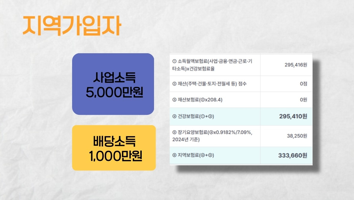 지역가입자의 재산은 없다고 가정하고 사업소득 5,000만원 배당 소득 1,000만원인 경우