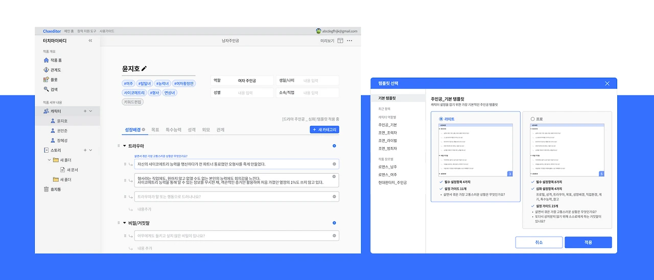 오는 5월에 베타 서비스 출시를 앞두고 있는 캐디터는 캐릭터 빌딩을 중심으로 작가의 집필 과정을 효과적으로 지원하는 저작툴을 개발하고 있습니다.