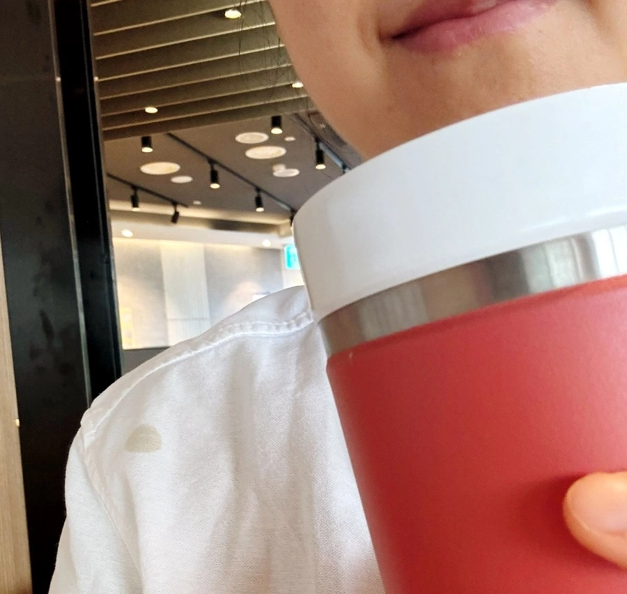 오늘은 어떤 글을 쓸까. 커피를 한 잔 받아 들고 2층으로 올라왔다. 이른 아침 텅 비어있는 카페는 테이블과 빈 의자, 머리 위로 흐르는 차가운 공기로 차 있었다. 텀블러에 담은 따뜻한 커피를 한 모금 마시니 야외 온천에 온 것만 같았다. 카페라테는 두유로 만든 덕에 짙은 황갈색을 띠었다.