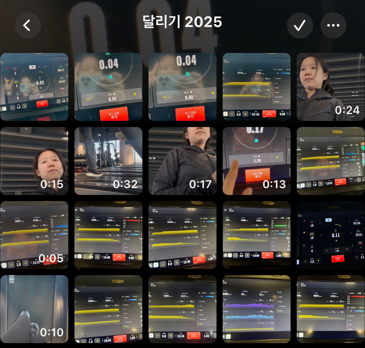 아주 작은 움직임은 작은 성취감으로, 자신감으로, 희망으로 이어졌습니다. 올해 계획에 '달리기 이어가기'를 포함하고, 꾸준히 하는 것에 의의를 두었습니다. 달릴 때마다 사진을 찍었습니다. 새 앨범 <달리기 2025> 만들고 기록을 모았습니다.