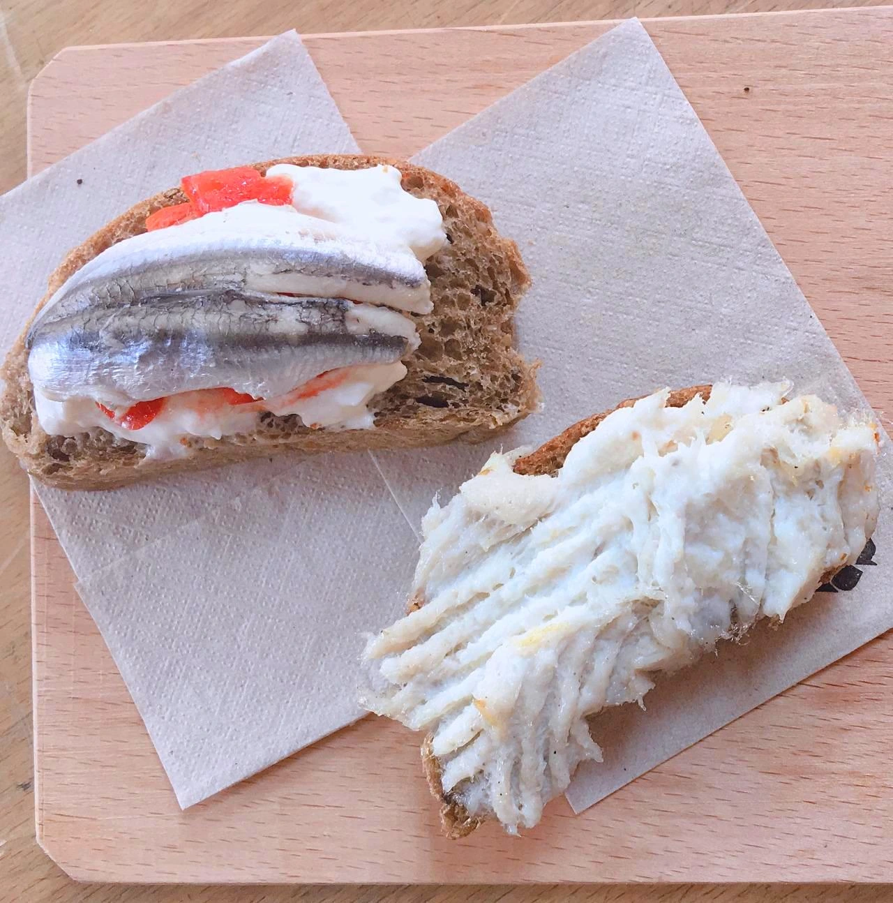 바깔라의 모습은 상상 이상이었다. 사선으로 무심하게 자른 바게트 위에 하얀 크림치즈를 발라놓은 모습이었다. "하얀 게 바깔라예요. 먹어봐요." 내가 좋아하는 맛은 아닐 것 같다는 의심스러운 눈빛으로 빵을 들어 올려 한 입 베어 물었다. "음.." 아무래도 너무 적게 먹은 듯했다. 한 입 더 베어 물었다. "음? 맛있네?" "베네치아에서는 치케티(cicchetti)라고 하는데 납작하게 자른 빵 위에 여러 재료를 올려서 먹는 요리예요. 베네치아에서는 바깔라를 비롯해 여러 가지 생선으로 만들어요. 이따가 나가면서 진열장을 봐봐요." 엄청 비릴 것 같다는 나의 예상과는 달리, 먹으면 먹을수록 고소한 맛이 꽤나 중독성이 있었다. 대구를 소금에 절인 건데 비린 맛도, 짠맛도 강하지 않았다. 우유를 넣고 쪄서 그런지 식감도 보들보들하고 맛도 담백하니 부드러웠다. 순식간에 빵 한 개를 다 먹었다. 기분이 좋아지는 식전 요리였다. "와인이나 맥주랑 같이 먹어도 좋겠다!" "응! 리지야, 마트에 가면 바깔라를 팔더라고. 나는 그거 사서 크래커에 얹어서 먹는데 단백질도 많고 저녁 야식으로도 딱이야." 동료 J는 다음에 마트에 가면 내게 보여주겠다고 했다.