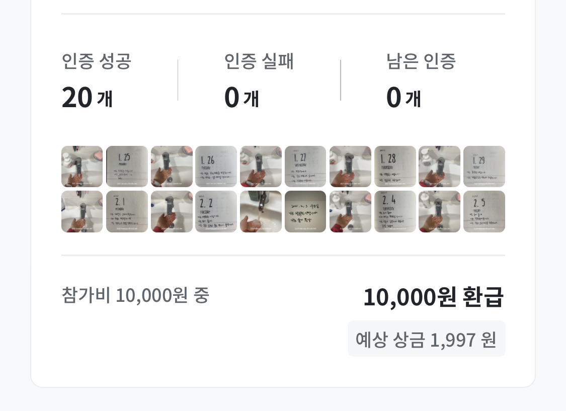 코로나 덕분에 집콕러들이 늘면서 점점 인기를 얻고 있는 챌린저스 어플을 받았다. 운동, 다이어트, 독서, 재테크 등등 다양한 분야에 도전하고 사진을 인증하는 프로그램들이 있었다. 그중에서 나는 6시 기상과 확신의 말을 적는 미션에 가입하고 만원을 걸었다. 이 주간 평일에만 미션 인증을 하고 실패 시 천 원씩 차감되는 것이었다. 6시에 일어나기 위해 가능하면 11시에 자려고 노력했다. 3시에 자고 9시 반쯤에야 겨우 눈을 뜨던 나였은데.. (밤늦게까지 집중해야 할 일이 생기면 낮잠을 30분 정도 자는 것이 도움이 되었다!)