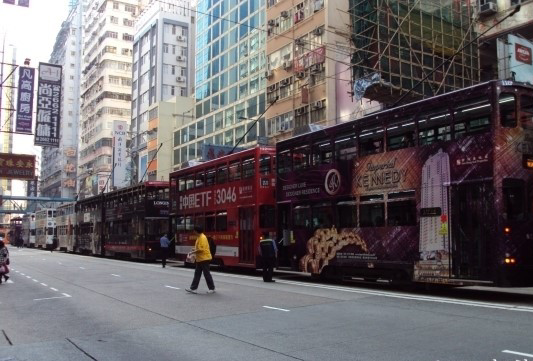 나의 목적지는 코즈웨이베이였는데 트램은 갑자기 완차이 역에 서서 꼼짝을 안 했다. 누군가가 소리를 쳤고 트램에 탄 몇 안 되는 승객들은 짜증 난 기색도 없이 트램에서 내렸다. 나도 눈치껏 다 알아들은 척하며 트램에서 내렸다. 앞서가던 트램에 문제가 있었던 모양이었다. 트램은 내릴 때 요금을 내는 시스템이었는데, 아무도 내지 않고 내려서 나도 내지 않았다. 내가 탔던 트램 앞뒤로 길게 알록달록한 트램들이 줄지어 섰다. 마치 트램 박물관에 트램들이 수집되어 있는 듯한 진기한 풍경이었다.