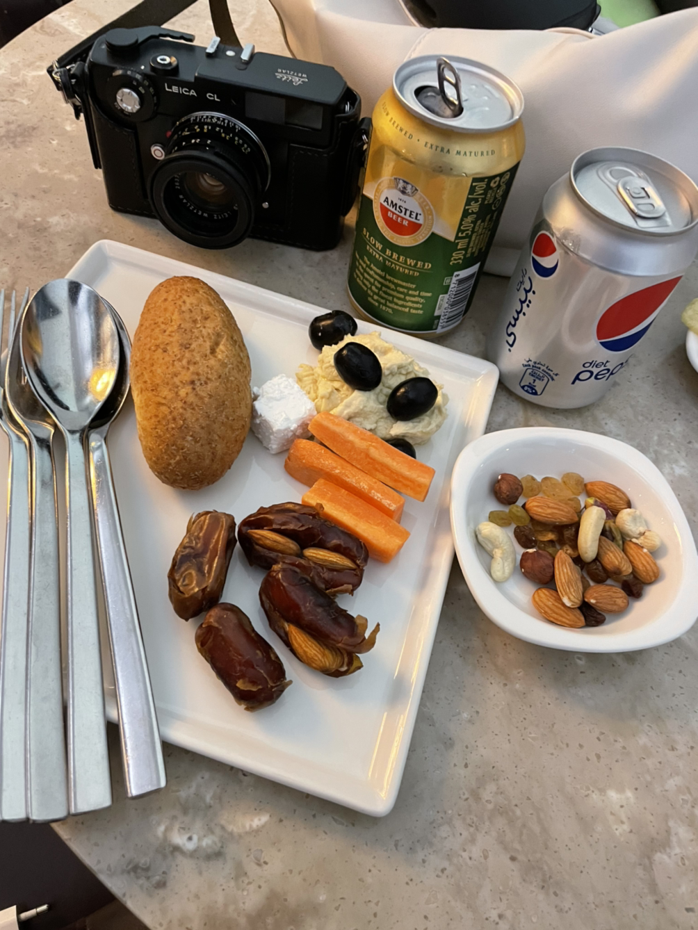 우선 새벽 4시에 착륙한 우리는 일출을 기다려야 했다. 미리 구매한 이용권을 들고 공항 라운지를 찾아들어갔다. 솔직히 그곳은 좀 실망이었다. '럭셔리한 산유국의 허브 공항'이라는 이미지 덕에 라운지에 대한 기대가 너무 컸는지도 모르겠다. 아니면 그곳이 가격 낮은 라운지라서 그랬던지도.. 술꾼답게 여행 전부터 무제한 맥주 소비를 계획했지만, 피로 탓인지 잘 먹히지 않았다. (젠장, 두바이 새벽 4시면 한국에선 한창 술 마실 시간이라고!) 라운지 음식들 중에 두바이산 대추야자 두 개와 후무스를 곁들여 맥주 한 캔을 겨우 마셨다. 누울 수 있는 의자는 몇 개 없는 데다 모두 다른 사람들이 차지해서 우리는 소파 두 개를 이어 붙여 쪽잠을 자야 했다. 까무룩 잠이 들었다 깨어보니 공항 창문 밖이 환했다.(젠장, 지금도 한국은 2차 갔을 시간인데!) 샤워실은 검색한 것과 달리 유료였고, 예상되는 상쾌함보다는 지나치게 과한 금액이라 세수만 하는 것으로 만족했다.