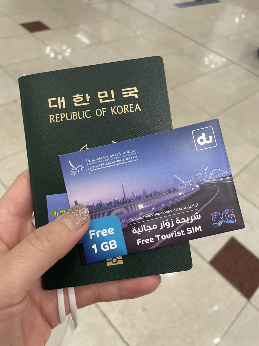입국절차는 생각보다 더 쉽고 간단했다. 공항 직원들은 모두 친절하게 두바이 시내로 가는 길을 안내해주며 두 시간 전에는 꼭 공항에 돌아와야 한다며 앞날을 걱정해주기까지 했다. 신선하고 놀라운 것은 또 있었는데, 이민국에서는 입국도장과 함께 무려 1GB짜리 무료 인터넷 유심칩을 나눠주었다. 부자나라는 다르구나, 나라에서 인터넷 유심칩을 무료로 주다니.. 물론 두바이몰에서 시간을 보냈던 우리는 유심칩을 사용할 기회 없이 여기저기서 터지는 와이파이를 잘 사용했다.