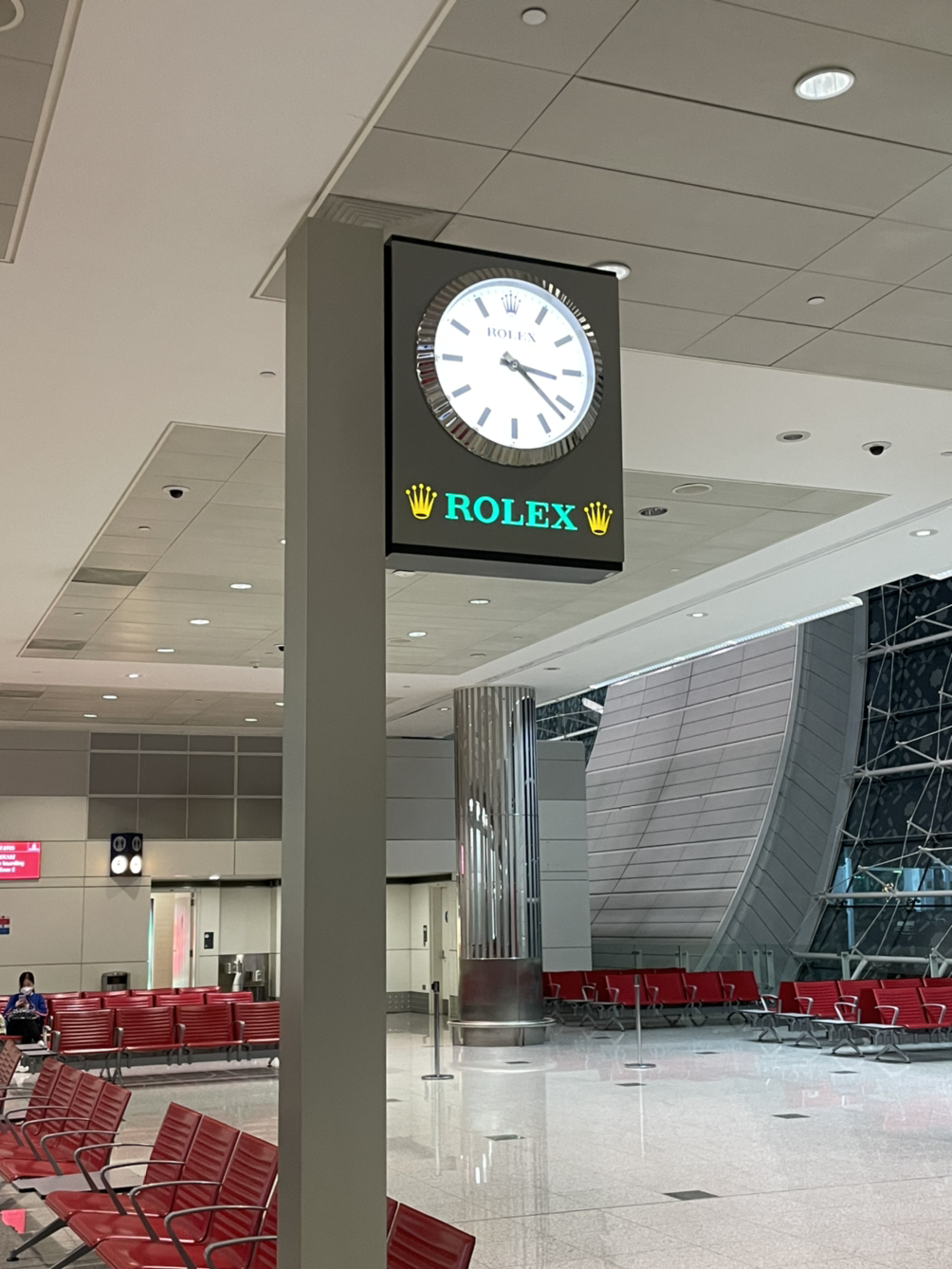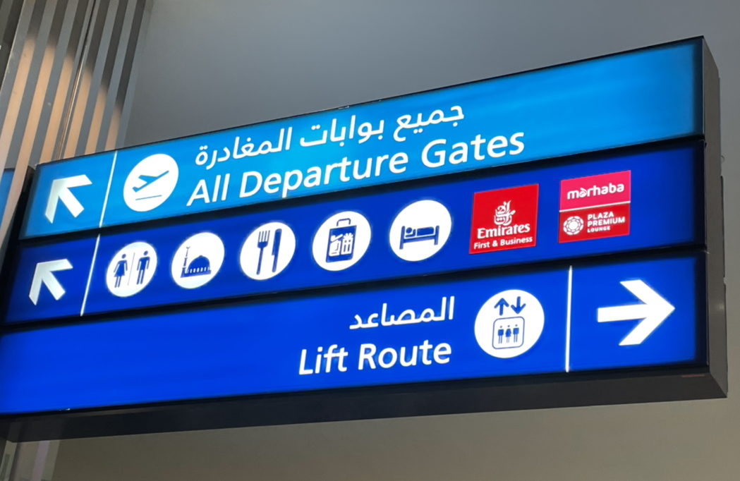 시내에서 공항으로 다시 돌아와 안 사실이지만, 라운지보다 탑승구 앞에 누울 수 있는 의자들이 훨씬 더 많아서 편해 보였다. 그리고 두바이 공항의 레스토랑들은 모두 24시간 활기차게 영업을 하고 있었다. 심지어 구찌 매장도 24시간이었다. 식당들은 푸드코트나 간이식당이 아니라 버젓이 훌륭한 식당들이었고, 시내의 식당과 다른 점이 있다면 한쪽 벽면에 보딩 타임을 알리는 전광판이 쉴 새 없이 반짝이고 있다는 것이었다. 코로나 여파로 대부분의 레스토랑이 문을 닫은 인천공항과는 사뭇 다른 분위기였다. (10시를 넘은 인천공항에는 스타벅스 달랑 하나만 운영 중이었다.)