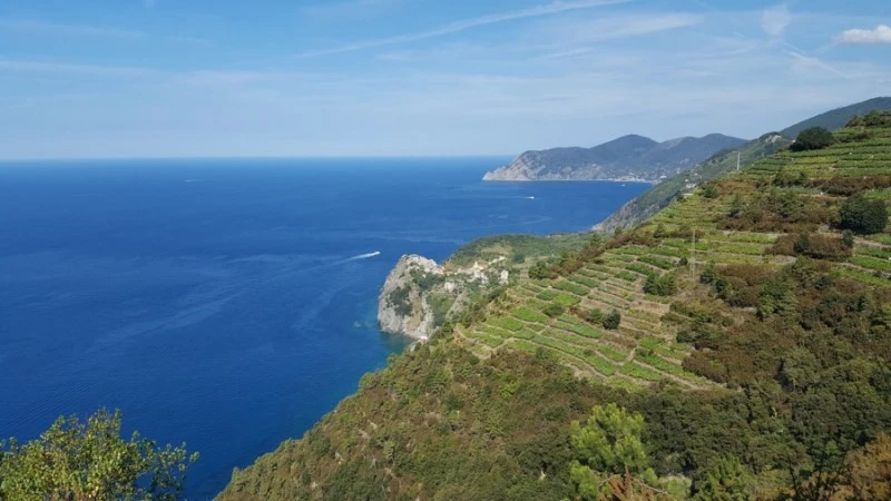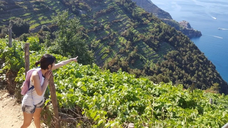 기차만 타고 마을을 오가는 많은 관광객과는 다르게, 내가 친퀘테레에서 가장 하고 싶었던 것은 트레킹이었다. 첫날 친퀘테레 패스를 사면서 받은 지도를 펼쳤다. 지도에는 해안선 트레킹 코스가 파란선으로 산등선 트레킹 코스가 빨간 선으로 표시되어있었다. 언제나 높은 곳에 올라가 아래를 바라보는 것을 선호하는 나는 빨간색 코스로 트레킹을 하자고 언니에게 말했다. 언니는 늘 내 여행 계획에 큰 불만이 없는 사람이므로 우리는 산하나를 넘어서 코르닐리아에서 마나롤라까지 트레킹을 하기로 했다.
