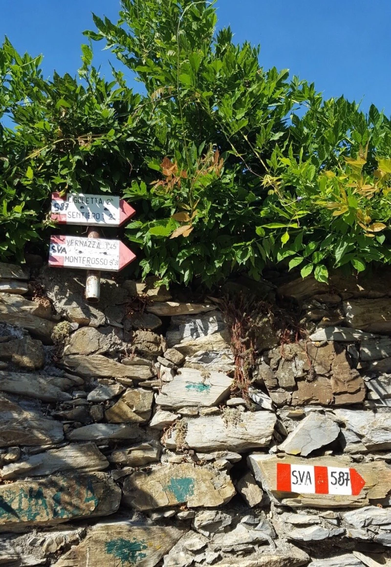 그런데 지도 위에 그려진 빨간 선의 시작 지점은 너무나 불분명했다. 왠지 시작점은 기차역 앞에서 있을 거라는 예상 때문에, 우리는 무작정 기차역까지 걸어갔다. 친퀘테레의 7월은 무더웠고 마을에서 역까지는 15분이 넘게 걸렸다. 기차역에서도 트레킹 시작 지점을 찾지 못해서 나는 역무원에게 길을 물었고 그녀는 우리가 왔던 길을 되돌아가야 한다고 했다. 그녀가 말하는 이정표가 나올 때까지 되돌아가다 보니 트레킹의 시작 지점은 우리가 다녀간 식료품점 바로 옆이었다. 맥 빠지는 일이었다. 길을 잘못 찾아서 체력소모를 한껏 한 후에야 우리의 트레킹은 시작되었다.