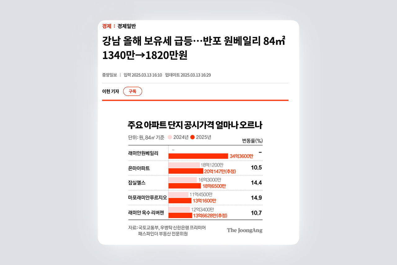 걷다 보면 묘한 기분이 든다. 이 이상함의 정체는 바로 '겉으로 보기엔 너무나 무던하다’는 데 있다. 최근 방문했던 용인 신도시 아파트들, 동탄 부모니집이랑 비교해도 외관상으론 큰 차이가 느껴지지 않는다.(물론 아파트만!) 한남동 고급 빌라처럼 외관부터 위압감을 주는 것도 아니다. 아마 사람들이 강남 아파트 시세에 눈을 부릅뜨는 이유는, 겉으로는 우리 집 아파트와 별반 다를 게 없는데 국민평형(84㎡)이 48억 원을 호가하는 그 압도적인 숫자 때문 아닐까?'