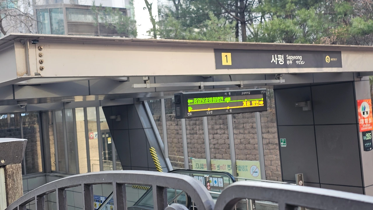 사평역은 신논현과 고속터미널 사이에 있지만, 인터넷 검색창엔 소설 <사평역>이 먼저 눈에 띌 정도로 실제 역의 인지도는 낮은 편이다. 아마 반포 아파트 주거단지 한복판에 쏙 들어가 있기 때문일 것이다. 반포의 아파트들은 이 역의 출구들을 마치 오벨리스크를 나눠 가진 유럽 열강들처럼 각자의 출입구 앞에 하나씩 거느리고 있다. 출구가 아파트 대문 옆에 바로 박혀 있는 풍경. 이걸 보고 있으면 역세권의 참뜻을 알게 된다. 아, 역세권이란 아파트 단지 안에 역을 소유하는 거구나