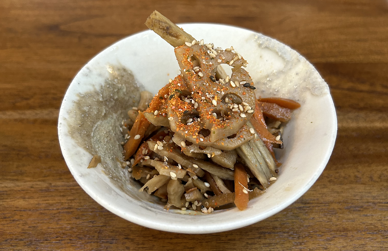 이른 봄이라 그런지 연근, 우엉, 당근과 같이 익숙한 뿌리채소들로 이뤄진 음식이었다.