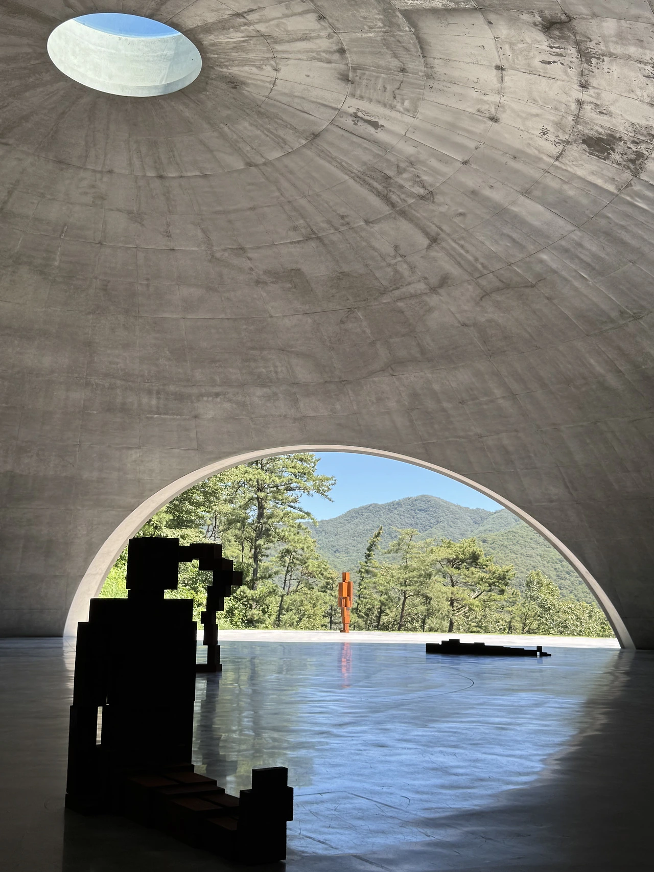 눈 내리는 산과 여름 바다의 풍경을