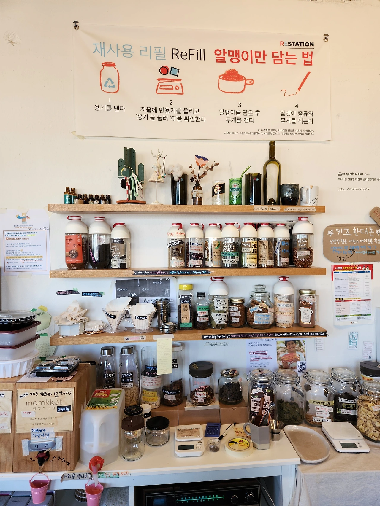 살면서 어쩌다보니, 뜻하지 않게 쓰레기를 마구 만들어내는 삶에 부담이나 죄책감을 느끼던 사람들에게 이런저런 아이디어와 나름 의미있는 소비를 가능하게 해주는 '알맹상점'.
