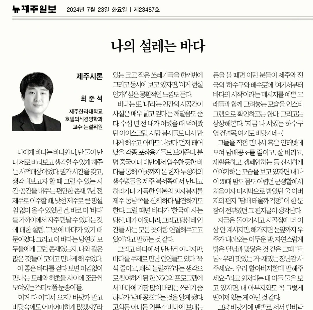 서울촌놈인 내가 7년 전 제주로 이주할 때, 잘 알지 못했던 이곳으로 큰 망설임 없이 떠나올 수 있었던 중요한 까닭 중 하나가 바로 이 ‘바다’를 가까이에서 자주 만날 수 있다는, 도시사람이 갖지 못했던 새로운 환경에 대한 설렘, ‘그곳에 바다'가 있기 때문이었다.