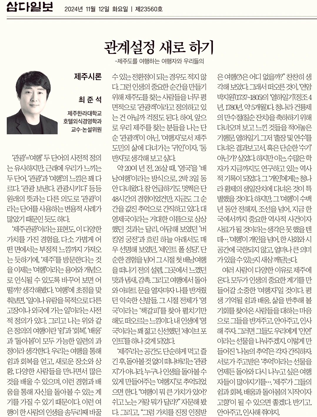 '제주관광'이라는 표현도, 이 다양한 가치를 가진 경험을, 다소 가볍게 어떤 면에서는 부정적 느낌까지 가져오는 듯하기에, '제주'를 방문한다는 것을 이제는 '여행'이라는 용어와 개념으로 인식될 수 있도록 바꾸어 보면 어떨까? 생각해봤다.