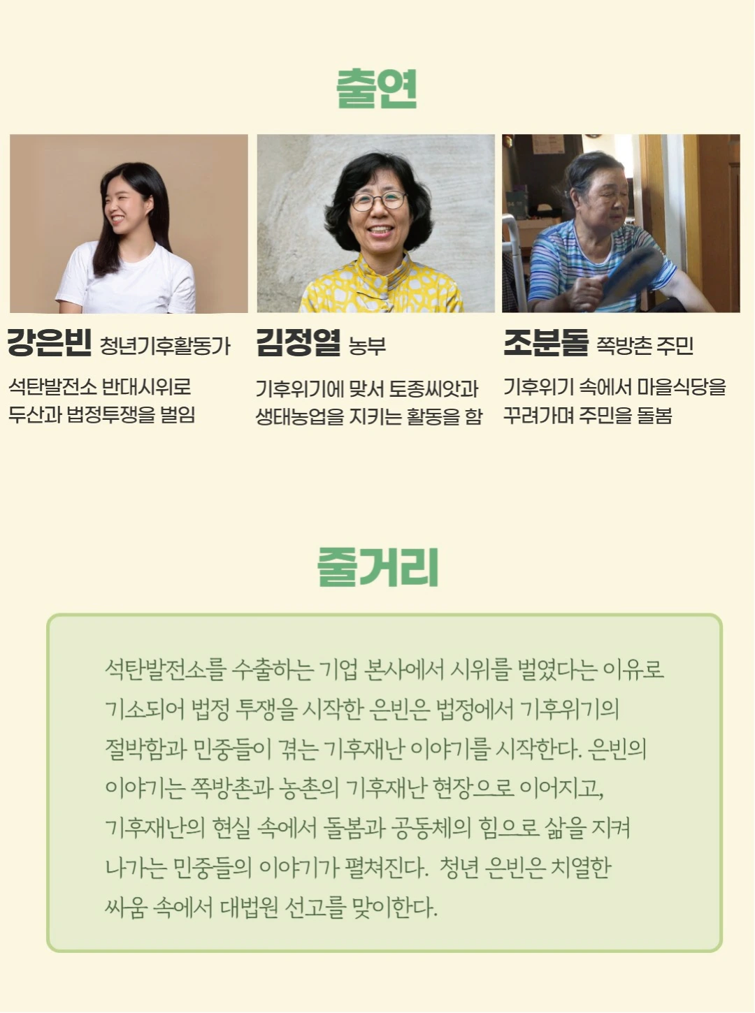 올해 제주의 기후정의행진 관련해서는 영화제라 하기에는 조금 아쉽지만, 한 편의 영화가 한 번의 상영회를 진행합니다.