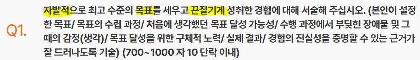 최근 sk하이닉스의 자소서를 본 적이 있는데, 결국 '자발적으로 문제해결한 이야기를 구체적으로 들려줘'라는 의도로 읽혔다.