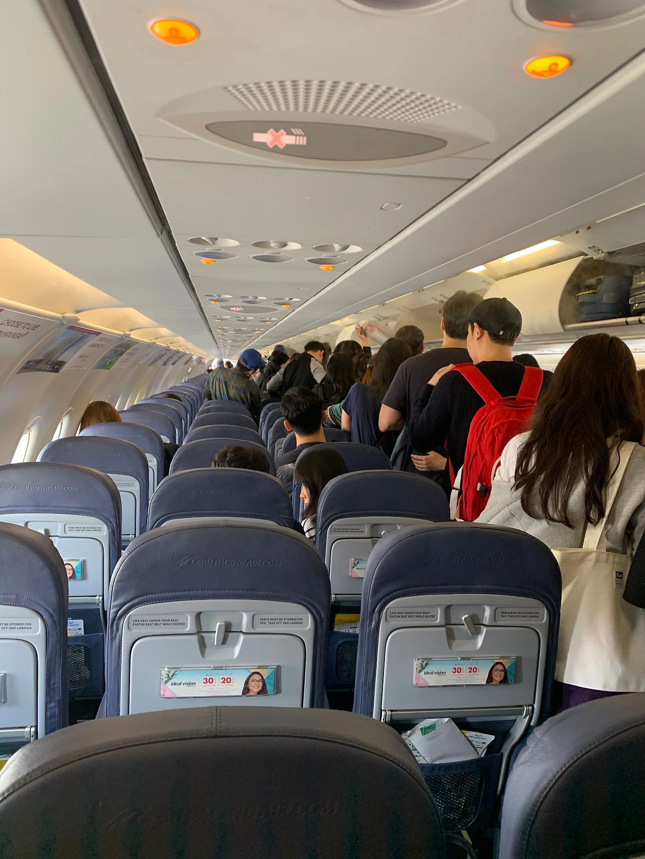 줄을 서서 라운지에 입성해서 보딩 스케줄이 잘 보이는 곳에 자리를 잡는다. 새벽 6시 10분에 보라카이로 가는 타 항공사의 비행기는 점심 12시 정도로 연착이 된 것으로 스크린에 보인다. 아침 7시에 출발하는 다른 항공사 역시 10시 정도로 연착이 된다고 한다. 계속 신경이 쓰인다. 그다음이 내가 타는 비행기인데, 시간이 다 돼도 게이트로 가란 공지가 안 뜬다. 담당자에게 확인 요청하니 계획대로 뜬다며 게이트로 가라고 한다. 먹던 것을 빠르게 정리하고 열심히 뛰어서 게이트에 도착한다. 정말 지연의 표시는 없고, 계획대로 비행기가 뜬다고 했고, 정말 제시간에 떴다.