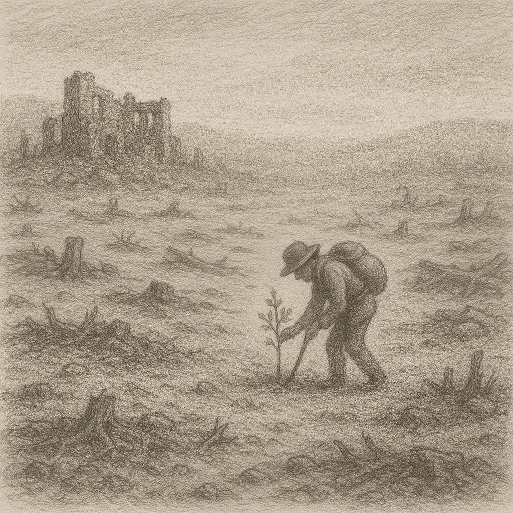 당장의 결과를 바라보지 않고 그저 오늘 할 일을 묵묵히 반복했을 뿐인데, 그 땅은 어느새 숲이 되었고, 물이 흐르고, 생명이 돌아왔다. 누구도 알아주지 않았지만, 그는 세상에 없던 미래를 만들었다.