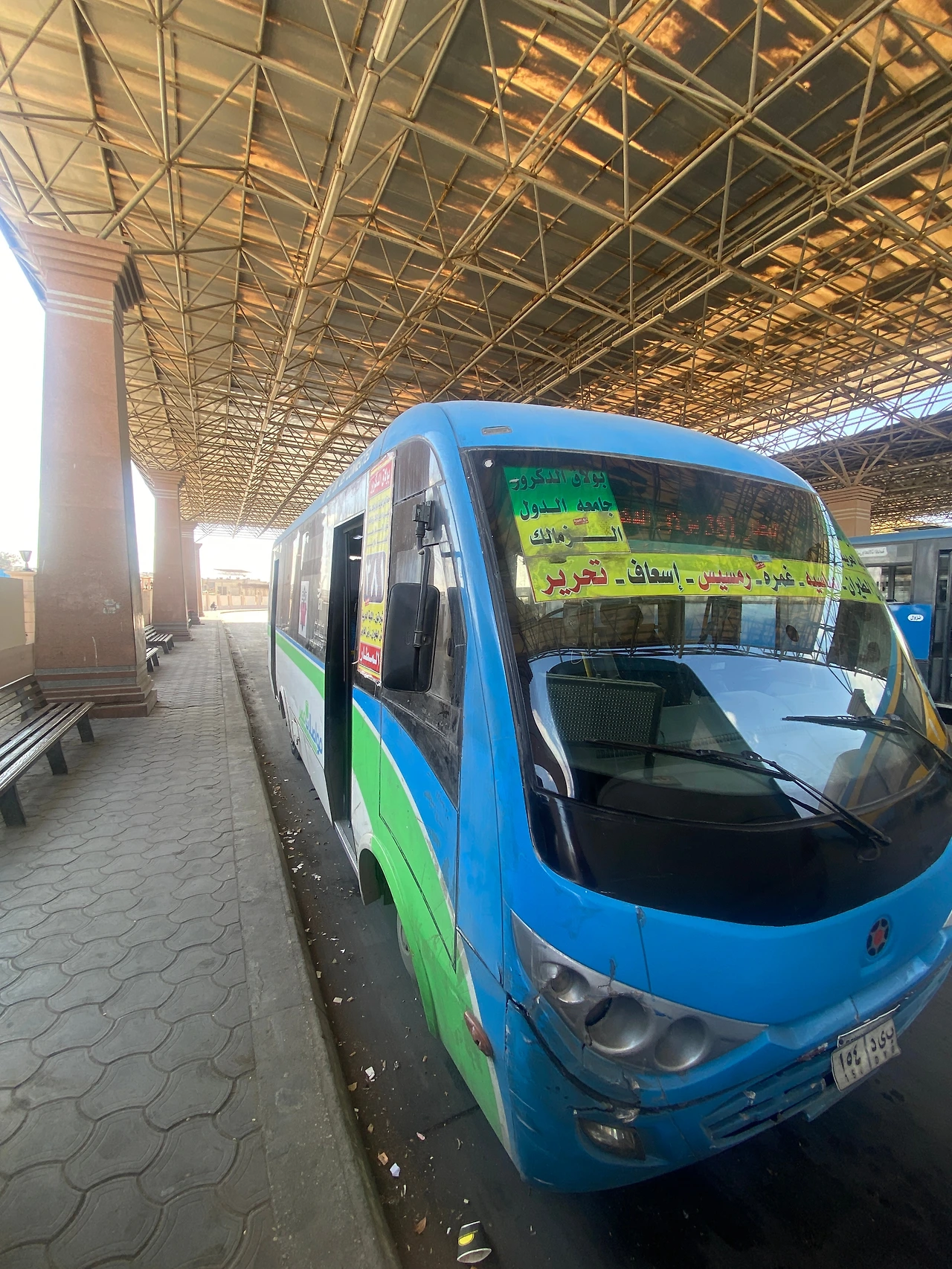 파라오의 지팡이 이집트 경찰 만세. 그가 알려준 대로 코너를 돌아가니 크고 파란 버스가 있었고, 공항셔틀은 정류장으로 나를 데려다 주었다. 버스정류장까지만 가면 어떻게든 될거라 생각했던 나는 다시 혼란에 빠졌다. 정류장 그 어디에 알파벳은 고사하고 우리가 아는 숫자 하나 적혀있지 않았던 것이다. 이집트는 우리가 아는 숫자[1,2,3,4]가 아니라 요런 [١,٢,٣,٤] 모양의 숫자를 사용한다.아니 그런데 시내면 몰라도 공항 버스정류장이면 그래도 영어정도는 적어놓을만 하지 않나? 분명히 인터넷으로 찾아본 바로는 111번 버스를 타면 다운타운으로 간다고 했다. 111은 아랍 숫자로 ١١١이다. 아무리 찾아도 없었다. 제일 인상좋아보이는 아저씨를 한명 붙잡고 111번 버스는 어디에서 타는지를 물었다. 그는 그런 버스 없다고 했다. 구글맵을 보여주며 그럼 여기쯤 가려면 뭐타야 하나고 물었다. 이 아저씨가 갑자기 심각한 표정이 되더니 동료로 보이는 다른 아저씨와 열띤 목소리로 한참을 토론했다. 처음에는 그들이 싸우는줄 알았다. 그러더니 381번을 타면 된다고 했다. 어떤 서울 깍쟁이들은 경상도 출신인 내가 뭔 말만 했다하면 화내는거로 오해하곤 했는데 이 분들의 모습을 보며 깍쟁이들의 마음을 조금 이해하게 되었다. 나는 유일하게 아는 아랍어 슈크란(감사합니다)을 외치고 열심히 381번 버스를 찾았다. 381을 아랍 숫자로 적으면 [٣٨١]이다. 처음 아랍어를 마주한 내 눈에는 숫자나 글자나 다 똑같아보였다. 그래도 내가 숨은그림찾기를 잘 하는 편이다. 한참만에 [٣٨١]이 적힌 버스를 찾아 탔고, 버스는 차선을 무시하고 마구 달려 카이로의 다운타운에 나를 내려 주었다. 드디어 성공적으로 카이로에 도착했다.