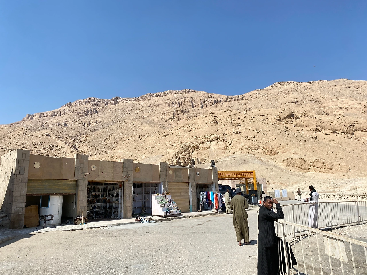 이어서 가이드 씨에게 왕비의 계곡으로 이동하기를 요청했다. 그는 진짜 거기 갈거냐며 네페르타리 무덤 말고는 볼 게 없다고 했다. 날도 더운데 거기 갔다가 후회할 거라고. 그런 말을 들으니 괜히 가서 볼 게 없다는 사실을 확인하고 싶어졌다. 결국 왕비의 계곡으로 이동했다. 우리나라는 왕이랑 왕비가 같은 묘역에 묻히는 게 일반적인데 이 나라는 따로 묻히는 게 좀 신기했다. 가이드 씨에게 이러한 사실이 왜 그런지 물어봤으나 그도 몰랐다. 왕비의 계곡은 사람들이 바글바글한 왕가의 계곡과는 다르게 아주 한산했다. 입구에 있는 몇몇 기념품 가게에서 상인들이 힘없는 목소리로 호객을 하고 있을 뿐이었다. 입장료만 7만 원인 네페르타리 무덤 앞에만 몇 명의 관광객들이 서성이고 있었다. 그 외에 몇 개의 무덤에 문이 열려 있었고, 들어가 보았지만, 규모도 작고 무엇보다 벽화가 남아있는 게 별로 없어서 볼 게 없었다. 옆에서 가이드 씨가 ‘그러게 내가 뭐랬냐’라는 눈빛으로 쳐다보고 있었다. 가이드 씨에게 이 무덤은 누구의 것이냐고 물어도 사실 잘 모르는 눈치였다. 진짜 잘 안 오긴 하나보다. 십오 분 만에 관광을 마치고 주차장 쪽으로 걸어오다 보니 길 옆의 파리 날리는 상점들에 다시 눈이 갔다. 왠지 저 사람들 하루 종일 공치고 있을 거 같았다. 뭐라도 팔아주고 싶은 마음이 들었다. 마침 목이 말랐다. 콜라를 두 캔 사서 가이드 씨와 나누어 마셨다.