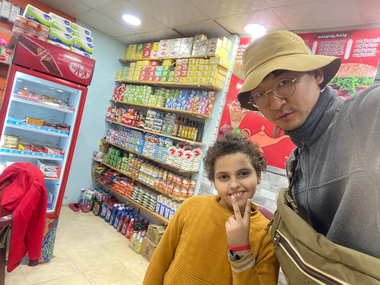 버스는 세 시간 만에 카이로역 앞에 도착했다. 버스에서 내리자마자 거리의 사나운 소음이 나를 감쌌다. 그런데 매연냄새가 나지 않았다. 후각이 마비되니 좋은 점이 하나 있기는 하구나. 일단 가장 가까운 버스터미널인 타흐리르 고버스 스테이션으로 이동했다. 삼십 분 후 쯤 샤름엘셰이크로 출발하는 버스표를 샀다. 표를 사고 나니 배가 고팠다. 냄새를 못 맡아도 배는 어김없이 고프구나. 하긴 후각 상실의 충격으로 밥도 먹는 둥 마는 둥 하긴 했다. 마침 매표소 건물의 지하에 매점이 있었다. 매점에는 어린 삼 남매가 가게를 지키고 있었다. 빵이나 먹을까 싶어 둘러보고 있는데 인도미 컵라면과 전기포트가 눈에 띄었다. 갑자기 뜨끈한 국물이 당겼다. 혹시 잘 이야기하면 따뜻한 물을 얻을 수 있지 않을까? 삼 남매에게 손짓 발짓으로 따뜻한 물을 줄 수 있냐고 물어보았다. 아이들은 나를 위해 물을 끓여 주었다. 착하고 고마운 친구들이었다. 한쪽 구석에 앉아서 라면을 먹었다. 불행히도 짠맛 밖에 느껴지지 않았다. 그래도 국물이 들어가니 몸이 풀리는 기분이 들어서 살 거 같았다. 막내 꼬맹이가 자기 스마트폰을 들고 와서 같이 사진을 찍고 싶어 했다. 귀여운 녀석. 물도 줬는데 내가 사진 하나 같이 못 찍어줄까. 기념으로 내 휴대폰으로도 사진을 한 장 남겼다. 얘들아 부디 행복하게 잘 살아야 한다.